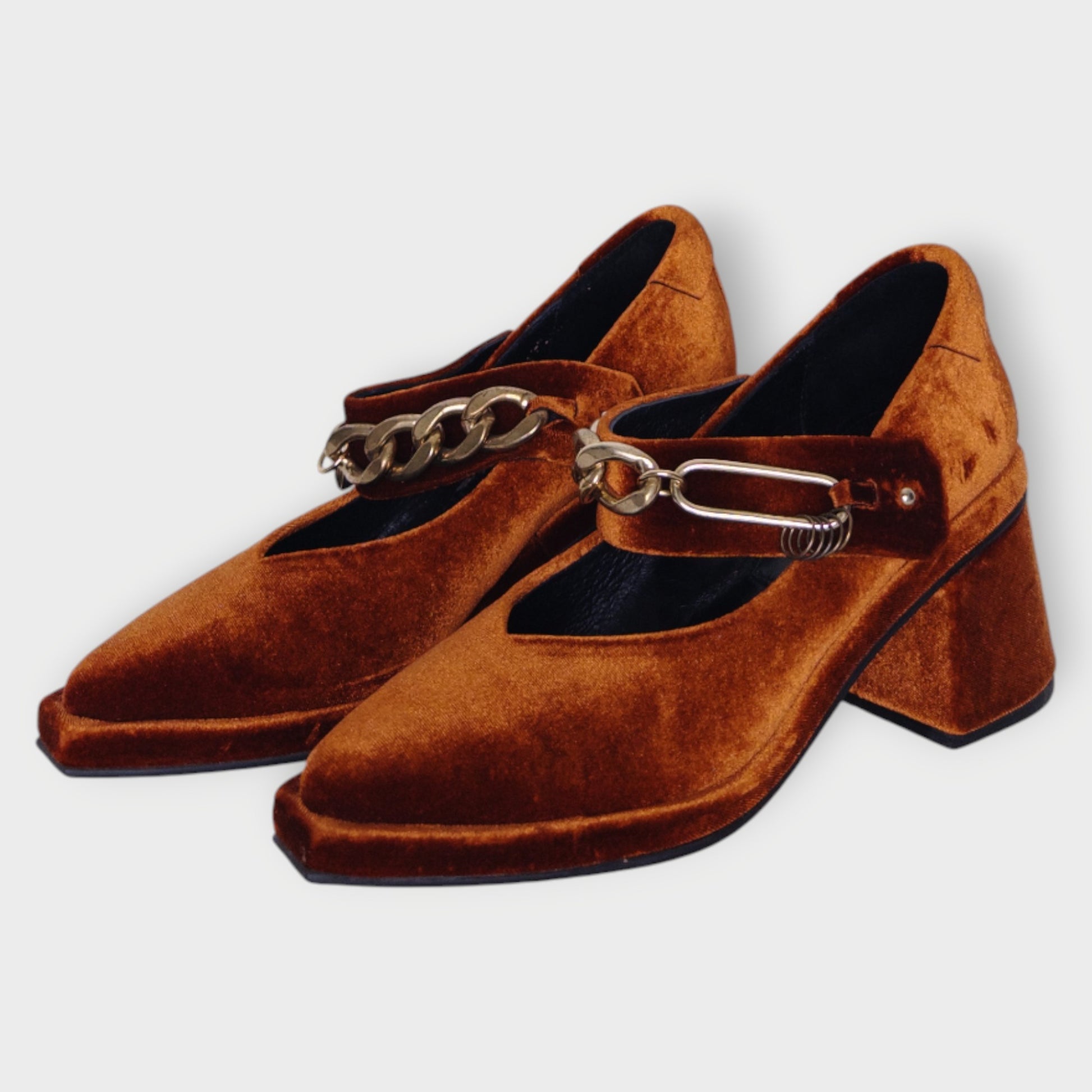 Velvet Gold Chain Heels