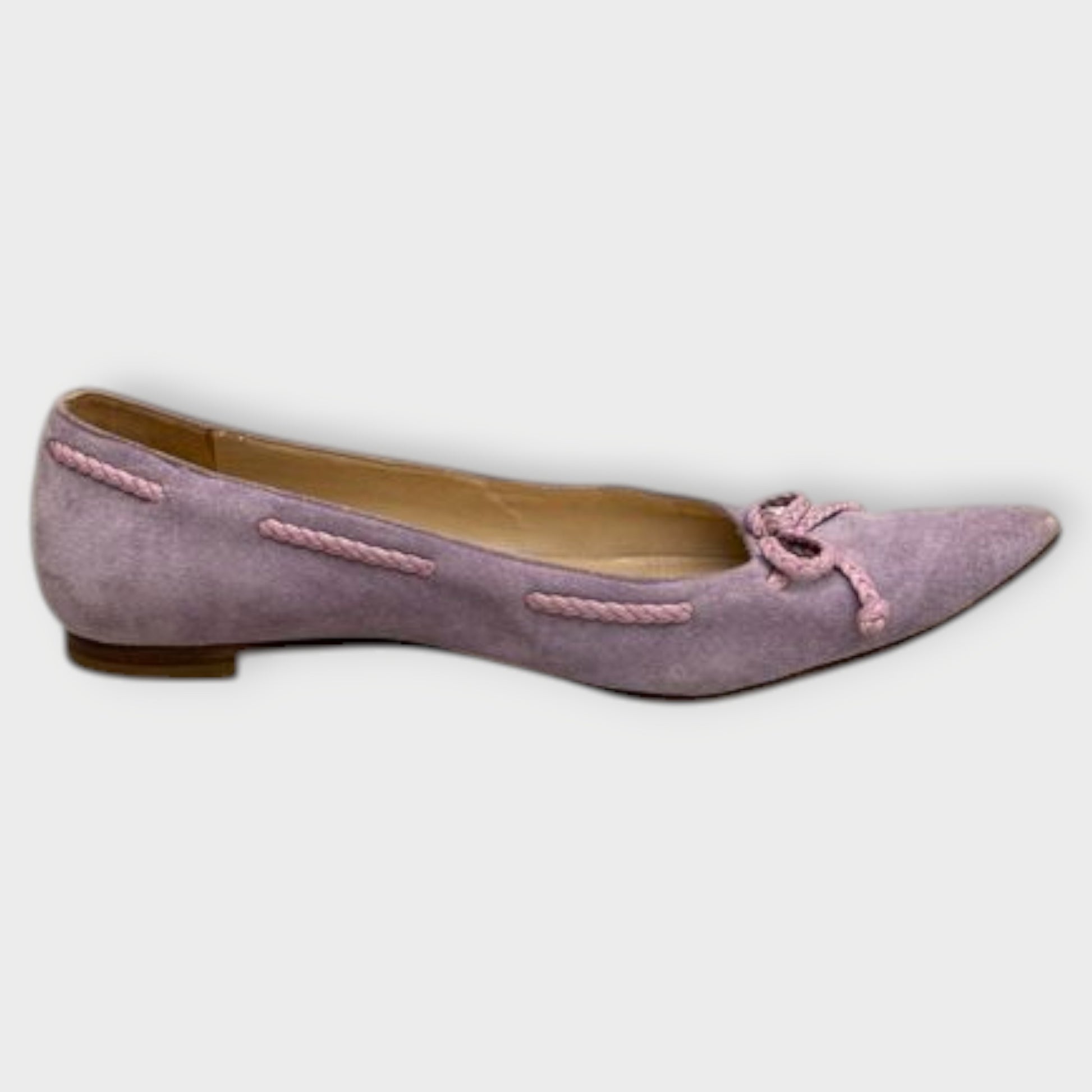Suede Pointed Toe Lace Bow Flats